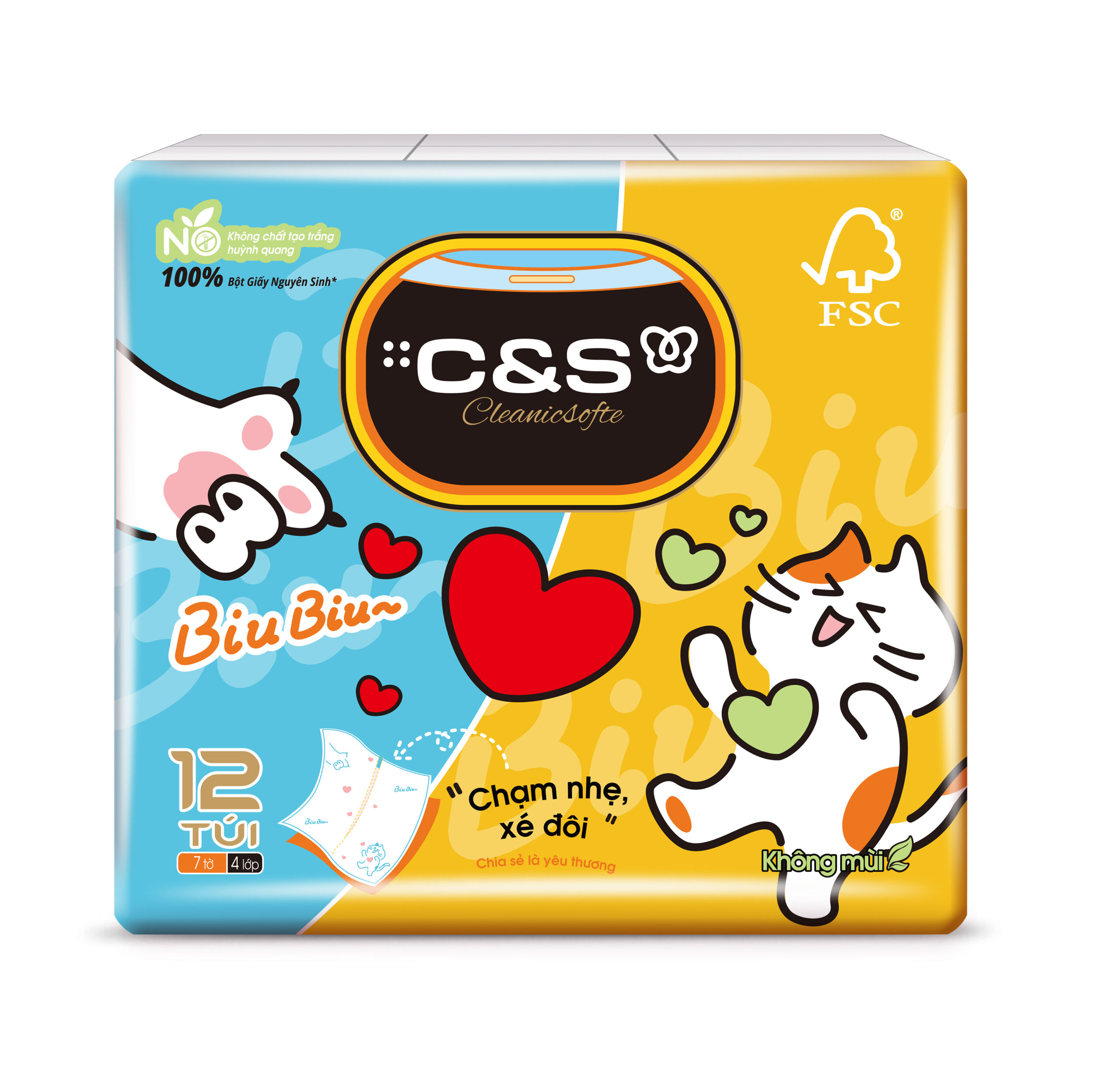 | Tên sản phẩm: Khăn giấy bỏ túi mini BiuBiu (Lốc 12 gói – 7 tờ x 4 lớp) | SKU : CM031-12X |